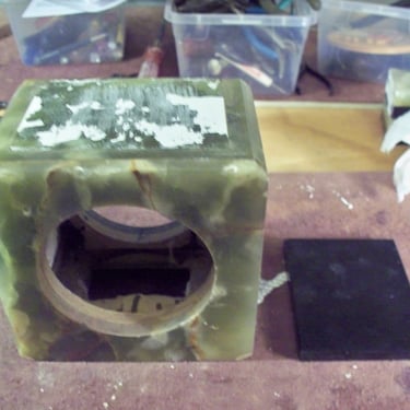 Case Repair: Damaged wood, metal (spelter, bronze), or porcelain repaired, often with silver soldering or patching.