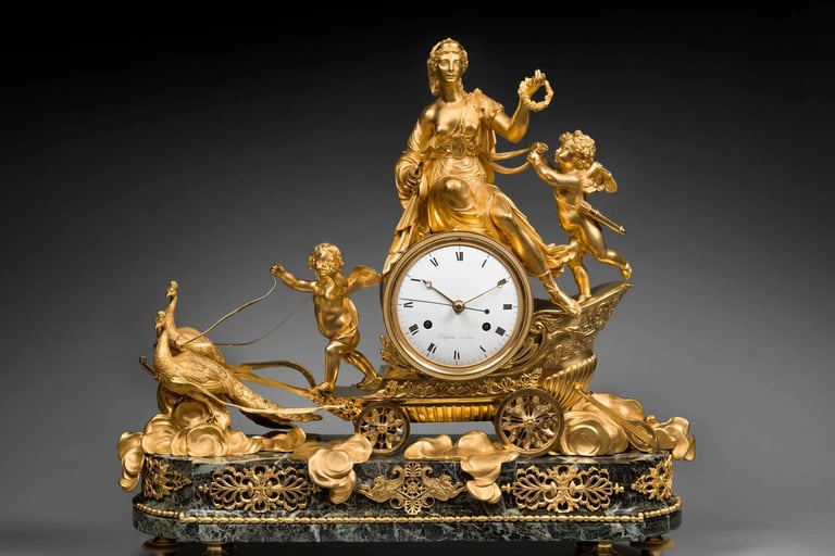 Although brief, the French Empire was undoubtedly a golden age for the French decorative arts in general, and for horological creations in particular. The timepieces made during this period, composed of gilt bronze, marble, and other precious materials, demonstrate all the technical and technological progress achieved during the 18th century.