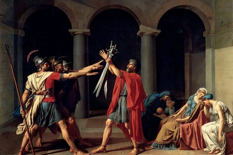 Fig. 6 – Jacques-Louis David, The Oath of the Horatii, oil on canvas, 1784-1785. Paris, Louvre Museum.